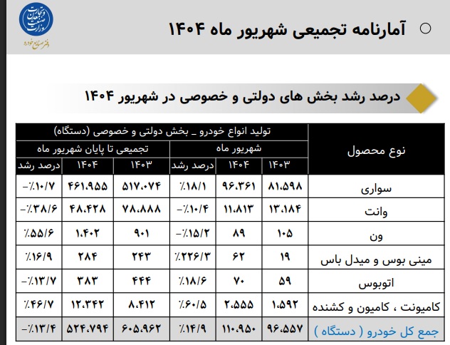 آمار تولید شهریور1404